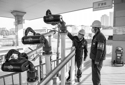 安徽池州石油组织库站员工开展设备安全专项整治行动,按照“五查五严” 要求,围绕冬季设备安全管理要点,查找冬季设备运行薄弱环节,整治安全管理短板,夯实设备安全管理基础。图为1月19日,油库员工按照流程巡查发油设备运行情况。孙宗奎 摄