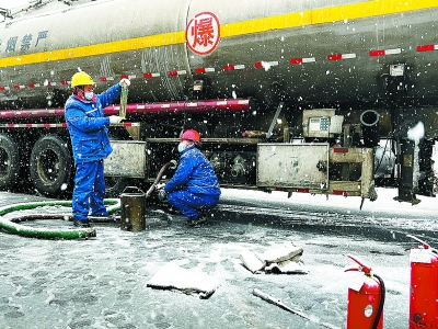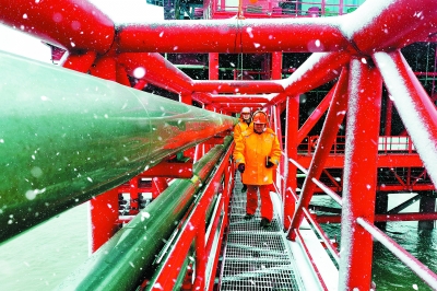 1月20日以来,北方多地迎来降雪。各企业迅速启动应对机制,组织员工加大特殊天气安全巡检力度,强化关键部位检查清理维护,全力保障安全生产、稳定供应。 图1为1月21日,华东石油局临汾煤层气分公司员工在站区巡检。郭豪杰 摄 杜晓玥 文 图2为1月23日,济南炼化炼油二部员工检查油浆泵阀门情况。罗 龙 摄 孙丽颜 文 图3为1月22日,湖北十堰石油郧十加油站员工在油品收卸前进行质量查验。王 寅 摄 殷金琼 文 图4为1月22日,胜利油田海洋采油厂埕北4D平台员工冒雪巡检。张 灿 摄