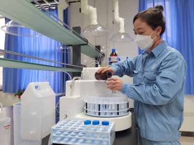 近日,安庆石化水质环保分析新装备——GMA4XX系列气相分子吸收光谱仪顺利投用。该设备覆盖近80%的水质分析项目,改变了过去以滴定分析、比色分析和重量分析为主的水质环保分析方式,其投用将极大满足现代化装置生产监控样品多、分析速度快、外报数据精准等需求。图为1月21日,员工利用新装备分析水质。 刘 斌 摄 张恒敏 文