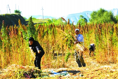李朋涛 图/文 春节临近,甘肃省东乡县布楞沟村的东乡族村民马五苏么老两口每天都在忙着置办年货。在外打工的儿子回家了,一家人要团团圆圆过个年。 “去年收获藜麦6000多斤,除了成本还能赚5万元,种了一辈子粮食没挣过这么多钱。”70多岁的马老汉高兴得合不上嘴,“儿子在外打工,都没我挣得多。” 藜麦,已经成为东乡的品牌。近年来,东乡县联合中国石化、甘肃省农科院签订三方协议,将耐寒、耐旱、耐盐碱、适应于当地生长的藜麦引进东乡种植,亩产最高达到600斤。同时,利用中国石化2.7万个易捷便利店销售网络优势,将东乡藜麦确定为“重点商品”向所属企业推荐,实现东乡藜麦的全产业链帮扶。2021年,东乡全县藜麦种植面积达到1.6万亩,惠及农户5964户,平均增收7734元。 据悉,从藜麦的种植到收购,中国石化向村民提供种子、农膜、化肥、机械、技术服务、收购等一整套的帮扶措施,细心周到地解除所有种植户的后顾之忧。 “中石化是真帮咱们!”藜麦丰收变“现”了,村民种植的积极性也高了,大伙儿都说,今年还要扩大种植规模,让日子过得更红火。