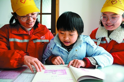 近日,江汉油田江汉采油厂发起关爱会战家庭儿童“有福童享”青年志愿者关爱行动暨“微爱圆梦”微心愿征集认领活动。志愿者为会战家庭的空巢老人送去新年祝福,为留守儿童送去冬奥吉祥物和图书。图为青年志愿者陪同小朋友阅读作文书。汤国毅 摄 赵宗华 文