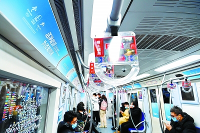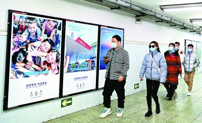 图1为北京朝阳门地铁站冬奥主题广告。 图2为北京地铁2号线列车内冬奥主题广告。 本报记者 胡庆明 摄