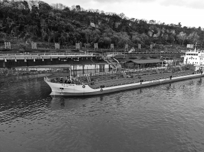 2月8日,在川维化工公司长江危化品码头,远洋7003号船舶顺利完成甲醇装载任务,起航发往江苏。这是今年以来川维化工与油品销售公司共享船舶资源,促成“油化联动”后发运的第2船,与2月1日发往湖北的第1船一道,打通船运发往华中和华东地区全流程,大幅提高集团公司内部油品运输和化工产品运输的质量和效率。图为远洋7003号船在码头装载甲醇。 陈 琳 摄 黄 瑾 文