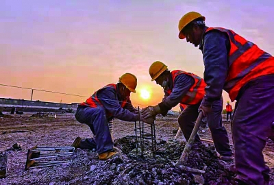 2021年9月,齐鲁石化光伏发电一期项目开工建设后,作业人员进行桩基施工。夏东明 摄