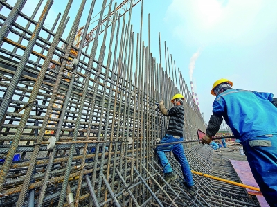 作为中国石化单套生产能力最大的PTA项目,新年伊始,仪征化纤300万吨/年PTA项目建设现场一片繁忙景象。该公司严格把控施工环节,统一协调施工时间、计划节点,在确保安全的前提下稳步推进工程建设。该项目建成后,将有效推动仪征化纤智能纤维、生物可降解材料等新材料项目发展,实现产值翻一番,5年再造一个“新仪化”。图为项目建设现场,工人们正在水处理系统均质池区域绑扎钢筋。 刘玉福 摄