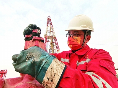除夕这天,我起了个大早,戴上安全帽,拎起试压泵,登上10米高的钻井平台,对井控高压闸门组做开钻前的压力测试。