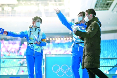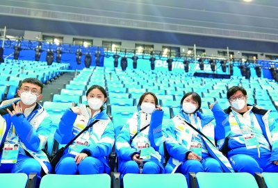 ·关键词· 忙碌并快乐着 张 炅 谭伟春 陆 杨 屈 冰/文 刘 行/图 “冰墩墩不是顶流,你们才是!”2月14日,首都体育馆,中国石化冬奥志愿者陈丹妮服务观众时,几名观众来找她和其他志愿者合影,其中一名女士说道。对陈丹妮来说,“得到观众认可是最开心的事”。 北京2022年冬奥会2月4日开幕以来,中国石化6名冬奥志愿者王雷、陈丹妮、张曼琦、吴陈冰洁、王向锐、江帆便开始忙碌在客流管理、看台引导和检票验票等岗位上。十多天下来,他们最大的感受是“忙碌并快乐着”。在零下5摄氏度的天气里,一动不动站岗3小时成了家常便饭。赛事多的时候,他们需要从7点服务到22点。 2月12日,在首都体育馆南侧观众看台,张曼琦发现有4名外国观众只佩戴了普通医用口罩,没有按规定佩戴N95口罩,于是走上前,用英语请他们到场外换上N95口罩。 “本来以为他们会觉得麻烦,没想到都特别配合。”张曼琦说。换完口罩,4名观众热情地邀请她一起合影,竖起大拇指,为她认真负责的工作态度点赞。 “每当向别人介绍我是中国石化的志愿者时,都感觉特别自豪。我还专门收集了中国石化作为2008年奥运会赞助商徽章,把它和这次赞助冬奥会的徽章一起收藏起来。”吴陈冰洁说,服务时还遇到了中国石化的观众,“感觉就像见到了家人,非常亲切。”