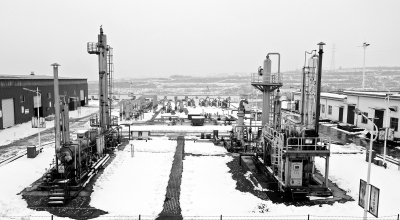 华东油气延川南煤层气田坚持“创新发展、稳步建产”,创新应用“电驱+远支撑”压裂工艺,实现直井日产超1万立方米、水平井日产超5万立方米,创煤层气单井产量新纪录。2021年,气田生产煤层气3.95亿立方米,新建年产能1.44亿立方米,连续4年实现上产。图为大雪后的延川南煤层气田中心脱水站矗立在黄土塬上。沈志军 王志勇 摄影报道
