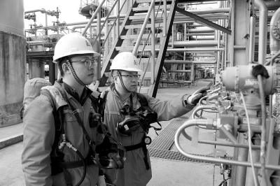 日前,西南油气分公司元坝净化厂开展春季装置检修,实施技改项目,精心调控设备参数,确保装置高负荷长周期平稳运行。图为2月18日员工巡检装置。 廖怿灵 摄 何 亮 文