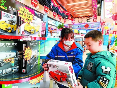 近日,安徽六安石油易捷便利店大力推广乐高益智玩具,包括小汽车模型积木、油罐车模型积木、加油站模型积木等,不仅可以丰富孩子们的生活,而且能锻炼他们的动手动脑能力。该公司各门店设置乐高益智玩具销售专柜,宣传“加一元多一件”优惠活动,深受小朋友和家长的欢迎。图为加油东站员工向小朋友介绍乐高益智玩具。王 韡 摄