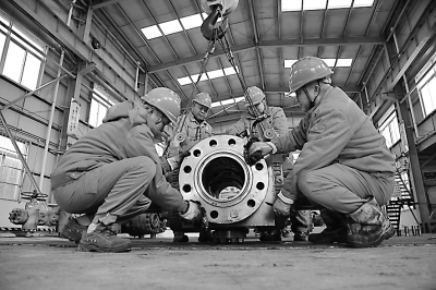 2022年,中原油田将建设4座储气库,他们从队伍调配、物资准备等方面精心组织,确保按期高质量完成任务。图为2月16日,储气库建设突击组正在对气井防喷器进行测试前的准备工作。张志刚 孙 博 摄影报道
