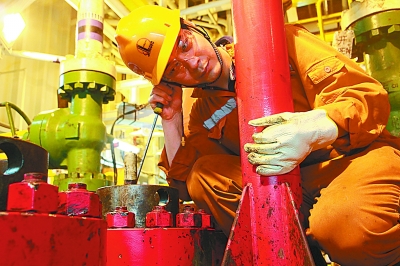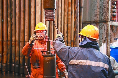 下套管时,悬重吨数相当于200多辆家用轿车重量之和,设备负荷达到平台历史极值;在4000米~5000米井段,由于井眼不规则,井壁如同布满车辙印的泥路一般坑坑洼洼。大家尽全力克服困难,最终实现了上海海洋石油局套管下入深度纪录和钻井深度纪录“双突破”,得到了甲方的高度赞许。如今,他们已经历了5次大位移井作业,对攻克这块“硬骨头”颇有心得。