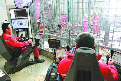 | 司钻房里,司钻、副司钻坐在操作椅上,就可以操控顶驱、铁钻工等大型钻井设备,自动化设备的优势得到充分体现。 |