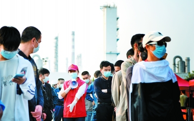 图1:连日来,福建泉州等多地突发疫情,福建联合石化迅速进行疫情防控部署,1600多名员工坚守生产一线,齐心协力战疫情、保安全、稳生产。图为3月14日,该公司在厂区广场开展全员核酸检测,志愿者有序疏导员工。 邱爱民 摄 肖万元 文 图2:天津石油严格压实疫情防控责任,在保证油品、非油品稳定供应的同时,为全市急救抢险等重点单位提供紧急油品保障。图为3月15日,红桥区芥园加油站员工为救护车加油,该站开辟绿色通道,每日接待救护车40余辆。 刘礼宾 摄 刘博龙 范雅婕 文 图3:面对上海疫情防控严峻形势,高桥石化于3月10日晚实施在岗值守、核酸检测、人员集中隔离等措施,确保生产平稳、员工安全、保供畅通。图为3月11日,该公司为值守员工准备行军床、睡袋、单人帐篷等物资。陈鸣启 摄 徐峥辉 文 图4:北京石油强化工作统筹、人员管控、场所管理、外防输入等措施,积极配合地方有关部门落实好重点地区防控工作。图为3月14日晚,太平京张加油站为救护车加油。高 君 摄 于 慧 文