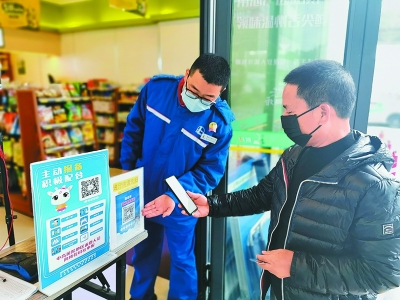 图2:浙江温州突发疫情,温州石油做好自身疫情防控的同时,快速办理油罐车通行证,保障油品供应,并为应急救援车辆设置绿色通道。截至目前,所有加油站均正常营业。图为3月17日,鹿城广化加油站落实进店顾客出示防疫码、测量体温等防疫措施。