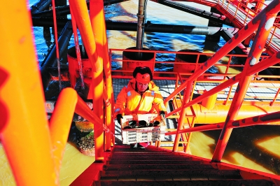 张 灿 文/图 “大家赶快换好工衣,把取样桶装上车,今天任务很重。”3月初的一天,胜利油田海洋采油厂海四管理区注采西北区巡线班班长闫龙叮嘱同事。 前段时间大风天气,导致他们没有办法到无人值守平台去巡检。虽然远程监控系统里并未发现平台有问题,但是闫龙依然对他所负责的5座平台44口油水井念念不忘,平台舱室有没有进水、设备流程有没有出现监控发现不了的问题…… 来到码头,大家齐心将所有物料搬上船,闫龙大声对红舰001号的船长说道:“船长,出发!第一站246平台。” 闫龙所负责的几座平台在胜利海上油田属于最远端,单趟航程就要近两个小时。 今天要把所有平台都要巡检完,合理安排在每个平台的工作时间显得格外重要。在船上,闫龙给同事安排工作,每个平台的巡检项由重到轻由急到缓,他都梳理得井井有条。 来到埕北246平台,闫龙与员工于天喜相互配合把样桶箱搬上平台,并嘱咐要到其他平台巡检的兄弟,上下平台一定要注意安全。 他们先对平台进行了一遍全面检查,再确认所有设备设施都没问题后,开始了今天的取重点油井的油样工作。 一上午他们巡查了两座平台。此时已经快下午1点了,为了赶时间,闫龙提前联系埕北4D驻人平台准备午饭。今天他们的午饭还是要在船上吃。 “今天的土豆牛肉做得挺好吃。”于天喜一边大口吃着,一边开心地说道。 简单的午餐后,闫龙拿出手机与妻子打起了电话,告诉她自己工作很顺利,并让她放心。每次出海他都会给家人报平安,这是在海上工作多年的习惯。 一天下来,他们巡检了5座平台,取了16口井油样,整改大大小小隐患20余个。 当他们回到陆地时,已是晚上8点多钟了。