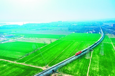 3月以来,洛阳石化以稳市场、保供应、惠民生为原则,满负荷生产,积极向河南省及周边地区提供洁净油品。3月1日至22日,该公司累计加工原油44万吨,铁路出厂成品油15.3万吨。图为满载洛阳石化成品油的列车驶往周边市场,一路春意盎然。 王东亮 摄