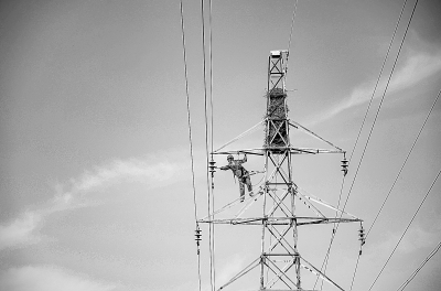 河南油田开展春季油区设备、线路检修工作,提升原油生产高压设备、线路安全运行水平和抗击自然灾害能力。截至目前,已完成10个原油生产线路及300多台用电设备的检修任务。图为河南油田电力施工人员对线路进行检修。 乔庆芳 摄 蔡红杰 文
