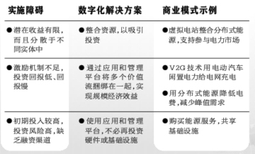 数字能源初创企业投资增长凸显出数字化在能源领域中日益重要的地位。前期成本高昂、缺乏融资渠道、高风险、对新技术缺乏信任、不同投资方向之间存在竞争、激励机制不足等都是能源转型投资中常见的障碍,消除这些障碍,就能帮助数字能源企业进一步推广清洁能源解决方案,降低能源转型成本,并将清洁能源发展成果惠及消费者。 例如,V2G(车辆到电网)技术可以在电动汽车闲置时将车辆的电力传输给电网,从而让车主获得额外收益。 数字商业模式模型是基于软件的,这让终端用户可以通过应用程序或其他平台,更直观地看到并灵活地定制能源服务。