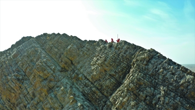 静默的无人区,刀削斧砍一般的山脉。点点红色攀上2000多米高的其克列克塔格山顶,架设通信中继电台,打通工区通信保障线。