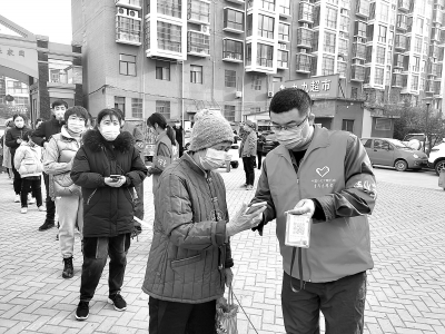 河南焦作石油分公司积极行动,落实部署疫情防控,各党支部都组织了党员突击队。党员志愿者走进社区,组织居民有序排队进行核酸检测,帮助扫码登记,解答居民咨询的问题。他们的热心服务受到居民称赞。图为3月24日,志愿者在核酸检测现场服务。赵 凌 摄