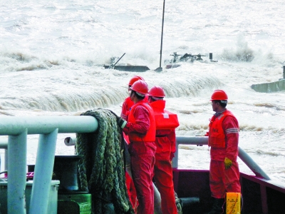 2016年6月24日,狂风卷着巨浪撞击着甲板。“胜利242”船接到指令出海营救黄港88货船,成功救助9名船员。