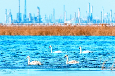 近年来,天津石化严格执行严于国家、行业和地方的排放标准,加快打造绿色低碳循环发展产业体系,助力周边生态环境保护,通过持续实施多个改造项目,有组织废气排放达标率、外排废水达标率、危险废物处置率均达到100%,多项重点环保指标达到国内领先水平,连续3年被评为全国炼化行业重污染天气应急绩效评级A级企业。图为春天来临,天鹅如期飞抵紧邻天津石化的北大港湿地。刘 慧 柴润金 摄影报道