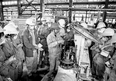 扬子石化炼油厂借大修设备“解剖体检”的时机,加强员工培训与青年人才培养,从安全、工艺、设备等方面,分层级组织开展学习培训,聘请设备专家、劳动模范等现场开设技术讲堂,提升实战能力。图为新员工在现场接受培训。 李树鹏 摄 周晓琪 靳佳伦 文