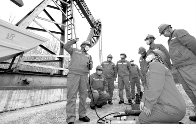 4月份以来,中原油田技师协会开展“岗位学雷锋 技术送基层”生产现场难题会诊活动,协会10名成员深入一线采油管理区推广应用新成果6项,组织现场难题攻关4项,进一步提升了创新成果在岗位的推广应用水平。图为4月7日,在濮东采油厂新庆29井场,中原油田首席技师许克新(左一)为一线员工讲解装置使用方法。赵奕松 摄 李建军 文