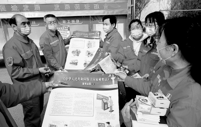 中原油田文留采油厂组织干部员工学习保密法律法规、典型案例,讲述红色保密故事,观看保密文献纪录片,增强干部员工保密意识。图为4月10日,机关党员服务队在文中采油管理二区举办保密知识移动课堂,员工们进行竞答。赵奕松 摄 冯艳红 文