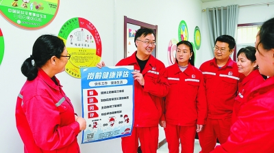 ?4月12日,中原油田文留采油厂健康管理员对上岗前员工健康状况进行评估。 丰建法 摄
