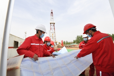 中原油田文卫采油厂探索应用井工厂模式,利用一个钻井平台实施多口井的流水线式集中钻井、压裂和作业施工,提高时效,实现开发集中管理。该厂应用井工厂模式共计钻井9口,节省投资约400万元,机械钻速比过去提高10%。图为4月22日,地质人员与钻井人员讨论钻进情况。赵奕松 摄 李 英 文