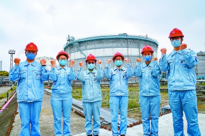 高桥石化员工为自己加油打气:“我们有信心打赢这场疫情防控攻坚战!”陈鸣启 摄