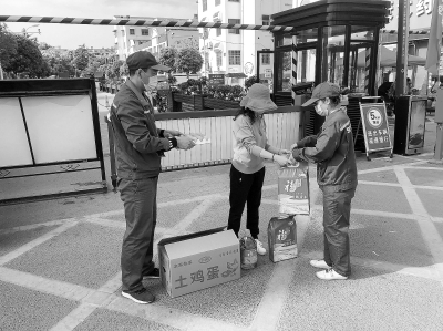 4月20日,根据疫情防控需要,安徽省阜阳市颍上县对当地小区实行封闭式管理。为了服务民生,阜阳石油颍上片区及时在朋友圈、客户群推送安民告示,易捷便利店24小时营业,供应粮油、鸡蛋等生活物资,并提供送货上门服务。图为阜阳石油城关加油站员工为封闭区居民配送生活物资。于海玲 摄