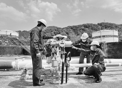 近日,江西景德镇石油开展啄木鸟行动,鼓励一线员工立足岗位深挖细查,及时消除安全隐患,确保生产经营安稳运行。图为该公司油库员工排查设备隐患。邵 群 摄