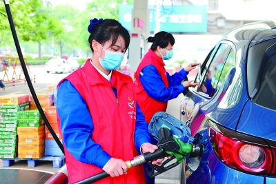 “五一”假期,为提高加油站服务质量和车辆通过率,河南南阳石油组织党员干部及机关管理人员到加油站进行帮扶。在现场,帮扶人员引导现场车辆、开展营销活动、打扫卫生、帮开发票,全力协助做好各项服务工作。图为5月1日帮扶人员为车辆加油。姜明武 摄