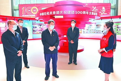 5月6日,集团公司党组书记、董事长马永生,党组副书记赵东在总部参观中国石化共青团庆祝建团100周年主题展览。 马永生、赵东先后参观了“光荣的中国共青团”“牢记嘱托”“青春石化”展区,认真听取讲解员介绍,仔细观看展出照片、文字等,不时停下脚步交流。 马永生指出,中国共青团是中国共产党领导的先进青年的群团组织,是党联系青年的桥梁和纽带。中国石化有4万多名共青团员,广大团员青年奋战在抗击疫情、科技创新、生产经营一线,迎难而上、勇挑重担,充分发挥了生力军和突击队作用,为公司发展作出了积极贡献。希望广大石化青年牢记习近平总书记殷殷嘱托,不忘初心使命,实干笃定前行,为实现中华民族伟大复兴作出新的更大贡献。 此次展览以“奋进”为主题,展出图片和实物208件,集中展示了中国石化党的青年工作和共青团工作。展览由集团公司团委主办,近期将在石化党建平台开设云展厅。 本报记者 章 铮 摄 符 慧 文