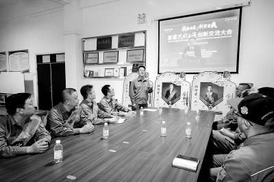 近日,洛阳石化组织劳模创新工作室团队成员深入学习贯彻习近平总书记致首届大国工匠创新交流大会的贺信精神,大力弘扬劳模精神、劳动精神、工匠精神,不断提升技能水平,以实际行动迎接党的二十大胜利召开。图为河南省五一劳动奖获得者章居斌(中)和团队成员观看首届大国工匠创新交流大会新闻。王东亮 摄