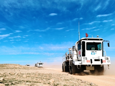 近日,国际石油工程公司与沙特阿美石油签署S84三维物探项目合同延期1年补充协议。该项目至今年8月合同期满3年。3年来,项目部克服重重困难,不断优化生产组织,连续4次刷新国际石油工程震源施工日产纪录,4次打破沙特阿美物探日产纪录。2021年,该项目部被中国驻沙特大使馆评为沙特优秀中资项目,在沙特阿美HSE评比中获地震队组第一名。图为S84项目物探车队从沙漠中开过。徐陶波 摄影报道