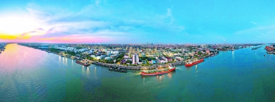 5月21日傍晚,远眺高桥石化,装置区的灯光与余晖交织,油轮在黄埔江码头装载油品。这个城市正加速恢复生机与活力。陈鸣启 摄