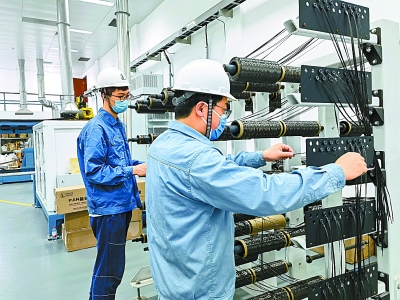 上海石油化工研究院统筹抓好疫情防控和科技攻关,有序推进浦东本部、漕泾工程化研究中心、金山分部复工,各项重点项目稳步推进。 图为首批复工的高性能碳纤维科研人员在调试设备。 肖士洁 周梦瑾 摄影报道
