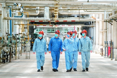 高桥石化紧锣密鼓推进岗位人员和施工项目复工进程,抓好人防、物防、区域管控“三落实”措施,为全面复工提供基础保障。目前,共有115名返岗员工陆续进入生产区域驻厂值守。图为2号连续重整装置技术人员向返岗人员讲解重点注意事项。陈鸣启 徐峥辉 摄影报道