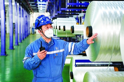 70多天来,上海石化3500多名生产人员驻厂值守,为上海能源保供稳产作出贡献。5月初,上海石化大丝束项目实现复工,首套大丝束生产线完工率接近80%。其他人员复工复产正逐步推进中。图为碳纤维生产线上,驻守党员认真检查产品质量。 李英豪 梁华丽 王佳麟 摄影报道