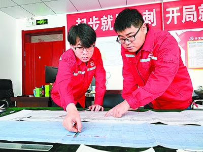 华北油气采气二厂的技术人员在探讨储层发育问题。