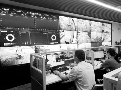 近日,江西赣州石油对原有监控架构进行智能升级,应用AI视频监控系统,对加油站现场进行智能监测和安全预警,实现后台数据实时上传、灵活调取、建档分析,弥补人工现场巡查的不足,提升加油站智能化安全管控水平。图为5月26日,监控中心员工用该系统进行实时监测。邓明洁 摄 陈 翔 文