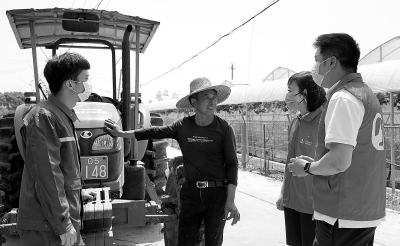 为进一步保障重要农时农机用油,浙江石油今年在全省2100多座加油站开展“三优一免”活动,农忙时期向农机专业合作社等提供预约免费配送服务。图为5月19日,湖州石油商客部负责人前往双林村了解农户需求。柴芮栋 摄