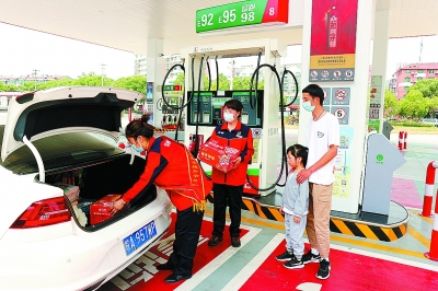近日,安徽地区气温不断升高。安徽石油抓住水饮销售旺季,开展“‘易’起狂欢,后‘备’可期”主题营销活动,在全省1200余家加油站易捷便利店启动后备厢计划,将客户购买的水饮送到车辆后备厢,并通过线上线下宣传、开展销售之星评比等措施,促进水饮销售,收到显著效果。图为合肥石油中心站员工将卓玛泉送至客户车辆后备厢。 孙德荣 摄