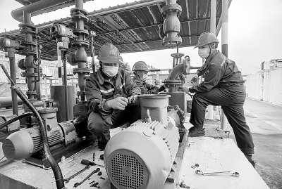 近日,广西钦州石油通过精准计算、调整工艺、合理利旧,对原有海上发油工艺进行改造,解决了发油速度慢、风险系数大等问题,发油速度提高50%以上,大大缩短了装油时间,提升了客户满意度。图为技术人员对倒油泵设备进行改造。翟恒芳 谢孝文 摄影报道
