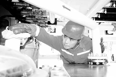 近两年来,河南油田油服中心利用电驱注氮装置、电驱修井装备等电驱装备代替油驱装备,累计节约燃油170吨,经济效益和社会效益显著。图为注氮队员工正在维护电驱注氮装置,确保注氮生产安全清洁。 鲁海涛 摄