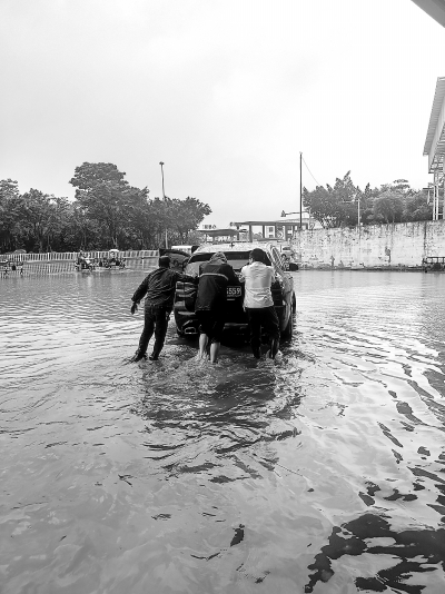 ?6月以来,广西进入主汛期,广西石油全员投入防汛抢险工作,加强隐患排查,落实防汛责任,筑牢库站汛期安全防线。图为6月11日,柳州石油柳钢加油站员工帮助顾客把车推到安全位置。 韦俊卿 摄